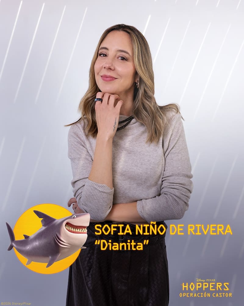 Dentro de los varios momentos hilarantes que ofrece la película uno destaca en particular: la irrupción de una tiburón llamada Dianita. Ese papel demandaba una dosis de energía precisa, de acuerdo con la perspectiva de la actriz y comediante mexicana Sofia Niño de Rivera. “Yo no suelo ser muy energética cuando hablo, no me emociona tanto vivir. Pero a ella sí”, afirma.