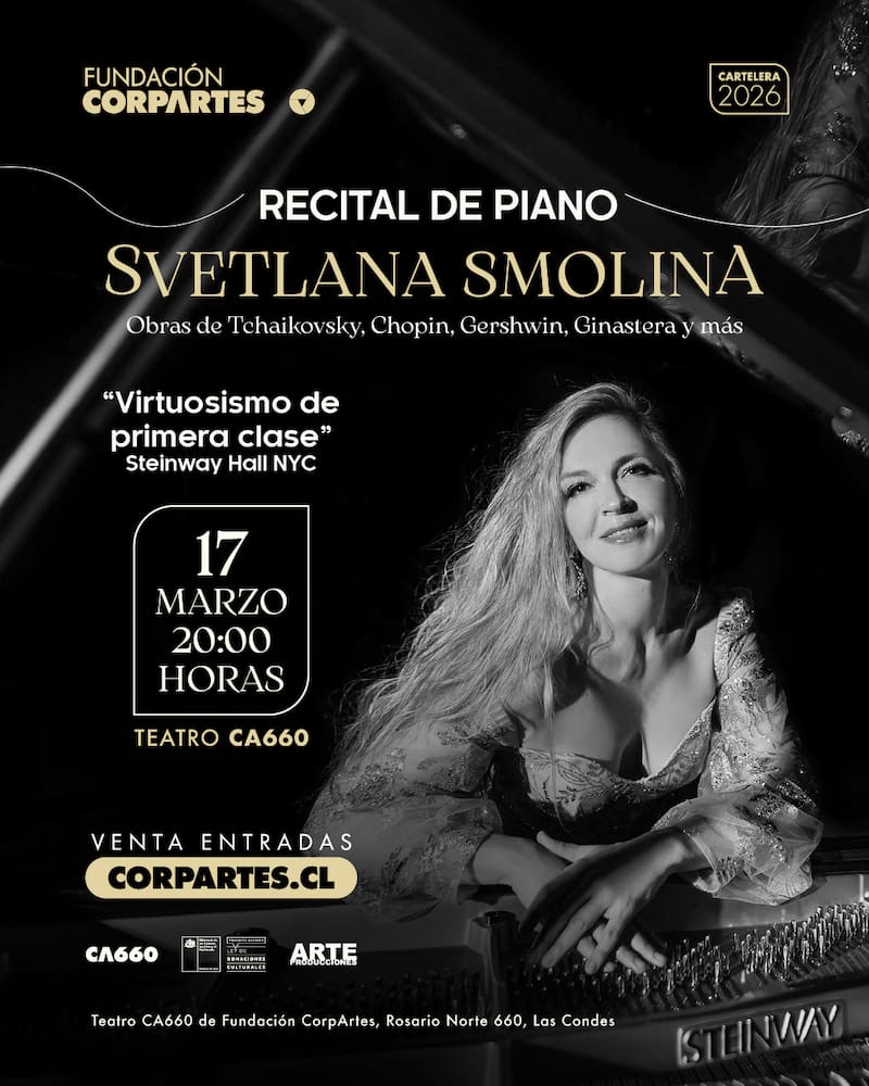“Es realmente un honor contar por primera vez con el talento de la gran pianista rusa Svetlana Smolina, en este recital que reafirma nuestro compromiso de entregar una experiencia de gran calidad acústica y alto impacto a nuestro público. Quedan todos cordialmente invitados a conocer el virtuosismo de una artista de renombre mundial, que ha sido ampliamente premiada y destacada por los mejores críticos de la música”, señala José Tomás Palma, director ejecutivo de Fundación CorpArtes.