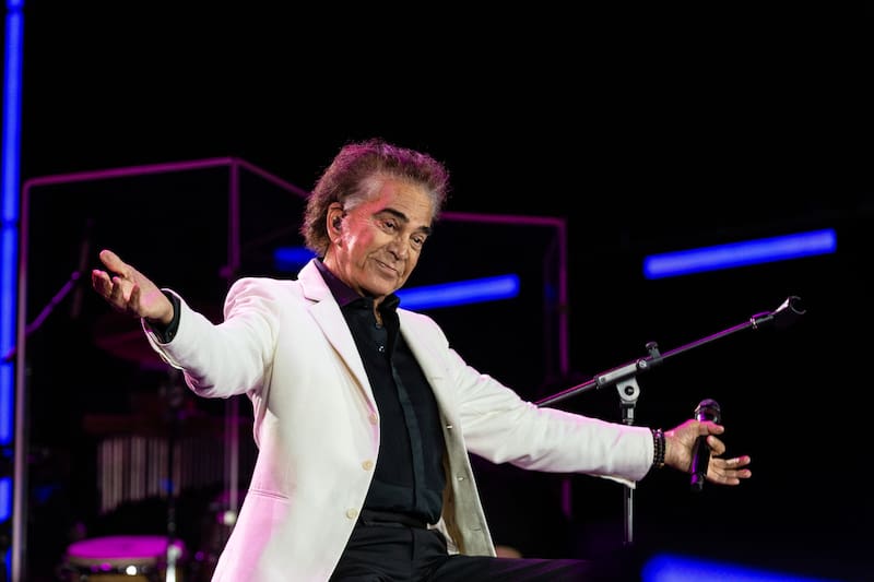 Desde una silla, el cantante interpretó una de sus obras con más de cuatro décadas de existencia, Dueño de nada. Las baladas lentas hicieron efecto en el público, quienes las coreaban desde el primer minuto. Incluso, los presentadores bailaron los lentos en un costado del escenario.