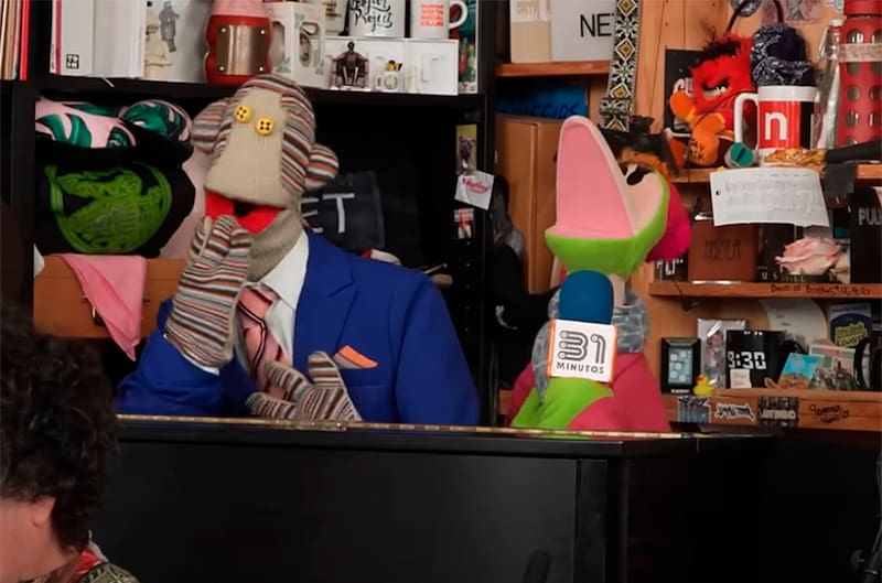 “El diseño escenográfico y de vestuario fue pensado para mimetizarse con el entorno de las oficinas de NPR, permitiendo que la atención se centrara en la interacción entre los títeres y la música. Incluso, el pianista lució una camiseta con un estampado que simulaba la imagen frontal del piano, logrando así un refuerzo de la ilusión visual en un set inusual para los famosos títeres”.