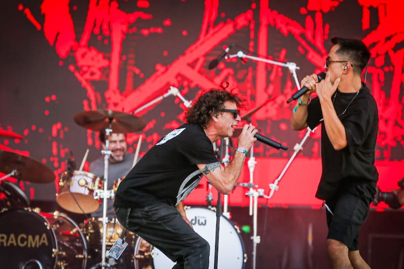 Sólo unos metros más al sur, en el Movistar Arena, las guitarras no eran el credo. Tampoco Camilo “Chino” Moreno o los Deftones. La fe se profesaba hacia la vibra trap de Benja Valencia, secundado por DJs, cuerpo de baile y texturas sintéticas, con una apuesta que establece un acento más romántico para la música urbana, de la misma camada de astros como Kidd Voodoo. Lentamente, la gente que ingresaba al parque también copaba el arena situado en la mitad de la elipse.