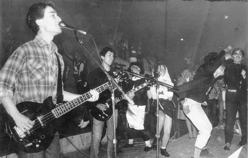 Luego que Narea viera en un diario un reportaje acerca del punk inglés, focalizado en dos agrupaciones que lo dejaron sorprendido -Sex Pistols y The Clash-, la idea fue casi unánime: ¡formemos una banda! Ese primer elenco también lo integraban otros amigos de barrio, como los hermanos Álvaro y Rodrigo Beltrán, y se bautizaron como Los Pseudopillos. Además, crearon su primera canción, interpretada a capela y en base a golpes sobre la mesa o aplausos: La mazorca del olvido. Difundida entre compañeros de colegio, fue su primer “impacto”, según establece el libro.