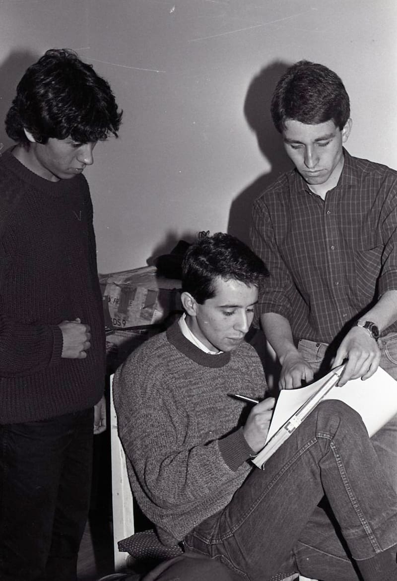 En 1982 idearon frente a su curso una ópera rock que criticaba a la TV y a los medios que manipulaban la información, en una de sus primeras exhibiciones del filo contestatario que después determinaría su obra, lo que dejó boquiabiertos a sus compañeros y profesores.