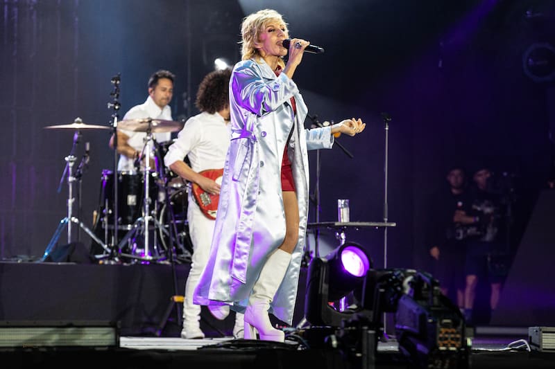 La cantante española, con más de cuatro décadas de carrera, salió al escenario a las 11:23 de la noche. La exintegrante de Mecano apareció con un vestido rojo debajo de un abrigo plateado. Esto rodeada de su banda que estaban vestidos de blanco.