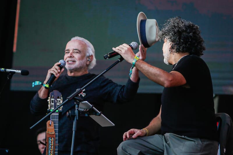García y Ubiergo han coincidido en otros momentos como en un abrazo de trovadores transgeneracional. Han cantado juntos en el Caupolicán, en festivales y en recitales de uno y otro. Pero la clave para este momento en Lollapalooza estuvo en el repertorio. “Pablo [Ubiergo] se animó a hacer estos arreglos y como estaban presentes en este concierto Silvio Rodríguez, Víctor Jara, César Junaro a través de una versión de Arak Pacha que nosotros más o menos replicábamos, músicas profundas latinoamericanas, era como imprescindible que Fernando estuviera con nosotros. Y aceptó. Y aceptó como acepta él, con humildad y con entrega”.