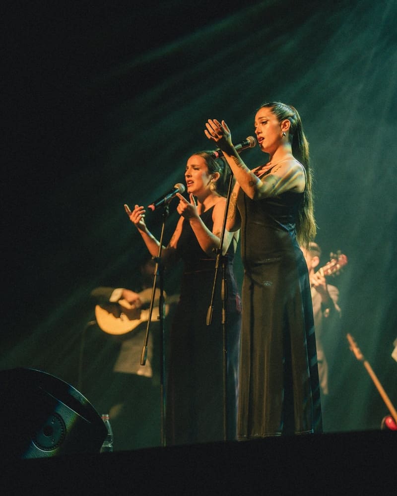 En la casa de la cantante Fiona Murillo, del Dúo Pajarito, no se escuchaba bolero, ni música folclórica. Reconoce que enganchó cuando conoció ese repertorio cantado por amigos y estudiantes en los pastos del Campus Oriente de la Universidad Católica. “Y me gustó, me encantó. Me empecé a acercar de a poco, me quise hacer amiga de esas personas, hasta hoy en día son mis amigos”, cuenta a Culto. Fue ahí donde coincidió con su compañera Amaia de Arteagabeitía con quien formó el proyecto que, sostenido en sus refrescantes armonías vocales, trabaja música latinoamericana desde 2019. Esta semana, estuvieron en el concierto ciudadano Chile canta a Gabriela, que celebró los 80 años del Nobel de Mistral. Para ella, la voz del Macha, a quien conoció recientemente, tiene una identidad. “Él es muy único. Siento que no finge, no trata de ser alguien más, no trata de hacerlo perfecto. Siento que es algo muy auténtico lo que él hace y creo que también eso es lo que le gusta a la gente. Es muy humano, siento yo”, dice.
