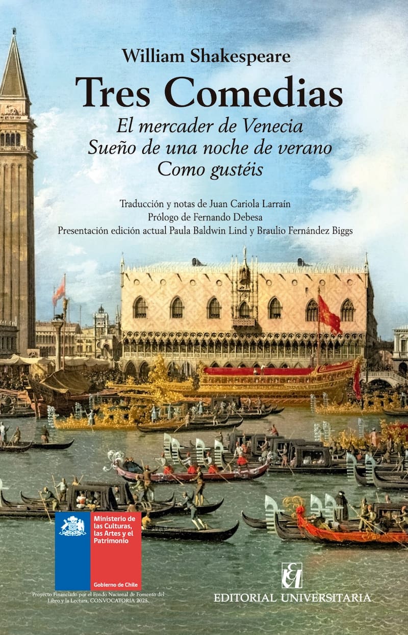 Editorial Universitaria rescata las históricas versiones de Juan Cariola Larraín de tres piezas fundamentales: El mercader de Venecia, Como gustéis y Sueño de una noche de verano. Académicos analizan la vigencia de estas obras donde el humor convive con conflictos éticos, de género y de identidad que resuenan en el Chile actual.