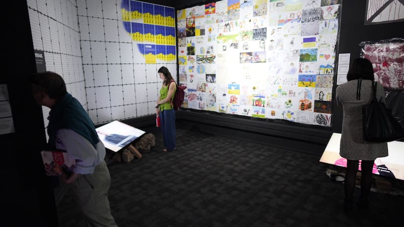 Curada por el reconocido director de teatro y cine ucraniano Vlad Troitskyi, con música de dakhabrakha y DakhTrio, la exposición en el Museo de la Memoria -que estará disponible hasta el 30 de noviembre- integra perspectivas psicológicas y testimonios personales de la Fundación Voices of Children (Las Voces de Los Niños). Además de dibujos de menores hechos que dan cuenta de la guerra.
