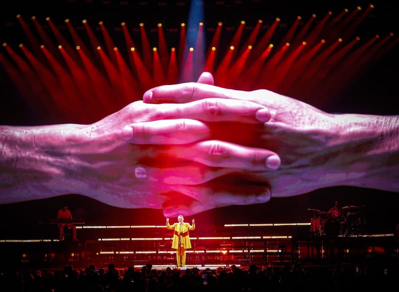 Desde hace varios años que hay preocupación por su voz y su aparente deterioro. Causó impacto luego de su aparición en entrevistas televisadas y hoy, es cierto que su tono al hablar es más seco, ronco. Sin embargo, al cantar esto pasa a ser prácticamente imperceptible: haciendo uso de su rango grave y algo de autotune. Cambia el tono de algunas canciones respecto a sus versiones originales, lo que funciona con un coro masculino en su totalidad, a diferencia de sus tours anteriores. Sus oyentes se adaptan, aplauden con fuerza; lo que haga la edad no es algo que realmente importe para sus fans.