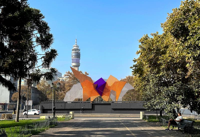 “Es muy importante hacer una obra de grandes dimensiones, que sea una mirada distinta de Santiago, que tiene componentes de color, que cambiará sus tonalidades en relación con la luz natural. Es una obra que, según el día y la hora, dialogará con la gente de manera distinta. Es un regalo para la ciudad”, dice Norton sobre Vientos de luz, escultura que contará con dimensiones de 28 metros de largo, 20 metros de ancho y 9 metros de alto.