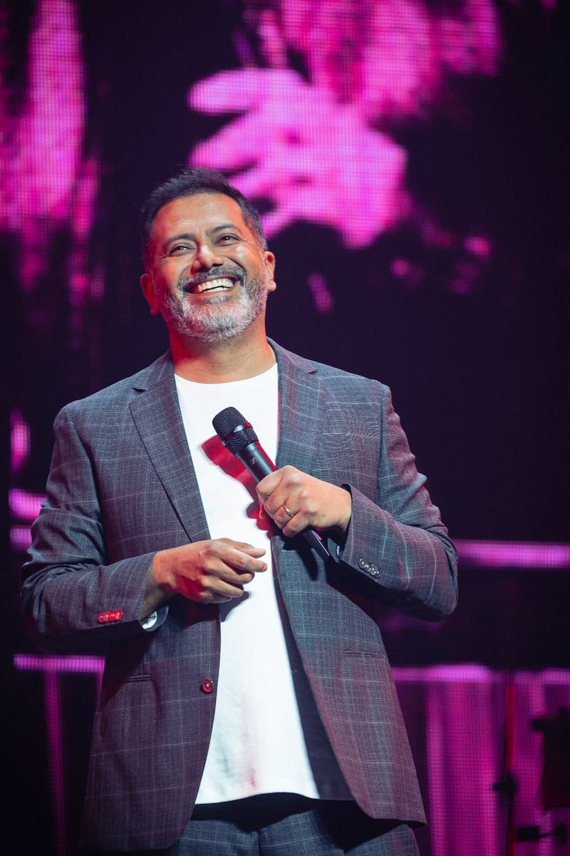 Así, Ruminot armó un equipo que incluye productora, fotógrafo, diseñadores de gráficas, entre otros profesionales. “Dependiendo del tamaño del show es que vamos sumando gente”, explica el comediante. Y por su lado, pronto dejó atrás la resaca de Viña y comenzó a trabajar en una nueva rutina, la misma que mostró en julio pasado en Movistar Arena. Un show que, casi al estilo de un concierto, tuvo invitados como Kidd Voodoo, Andrés de León, Marcelo Barticiotto y la orquesta de Viña, al mando de López. Esa rutina, con orquesta y todo, es la que se podrá ver este sábado 13 de diciembre en el Gran Arena Monticello. Y esta vez, la entrada ya no es con In Bloom, sino con otro tema noventero, Rock ’n’ roll star, de Oasis.