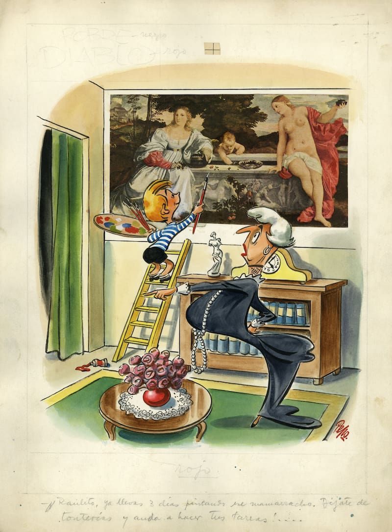 En la revista Pobre Diablo también creó icónicos personajes como Don Rodrigo y Viborita. A la par, hacía recordadas ilustraciones para la Polla Chilena de la Beneficencia. “Hizo tantas cosas que demuestran que era un enorme artista”, dice Aguilera.