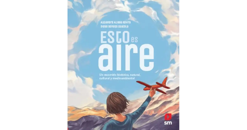 La imagen que abre este libro álbum es la del majestuoso vuelo de un águila sobre una cadena de montañas rocosas. Y la que cierra es la de un astronauta que observa la atmósfera terrestre desde el espacio. Ambas transmiten inmensidad, libertad, expansión, indudablemente belleza. Y entre ambas hay un gran historia, que es la que cuenta este libro, desde la formación de la atmósfera, la conformación del aire, los mitos creados en torno al viento y el modo en que lo respiramos (¡consumimos 11 kilos de aire al día!). El libro abarca también el desarrollo de la meteorología y la conquista del aire y el espacio. También su vínculo con el arte, la poesía, la música y el cine. Y por supuesto, su relación con la crisis ambiental: el desarrollo de energías renovables y la necesidad de reducir los gases de efecto invernadero. Ilustrado por Diego Donoso y escrito por Alejandro Aliaga, el libro es un refrescante viaje por paisajes abiertos, que invita a cuidar, saltar y disfrutar del aire libre.