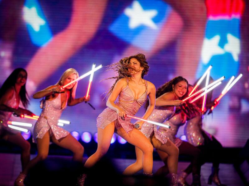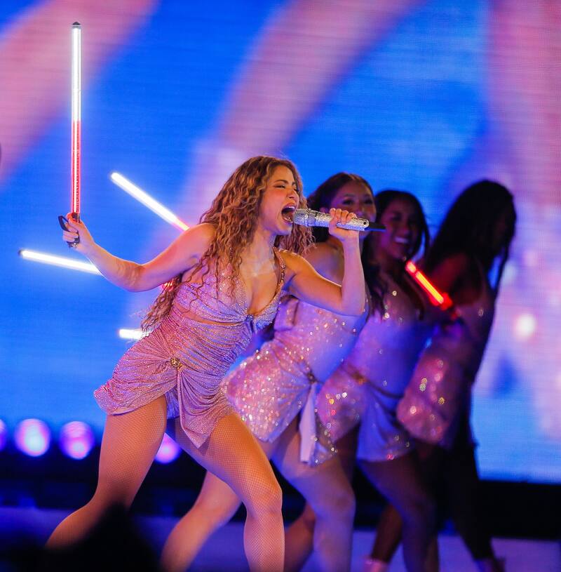 Todas estas fueron imágenes y secuencias en la gigantesca pantalla que ocupa por completo el amplio fondo, introduciendo distintos segmentos donde la colombiana cambia constantemente de vestuario. Incluso la cámara la sigue a su camerino mientras canta y la asisten para una nueva indumentaria, en un alarde extraordinario en medio de un show con características de musical. ¿Mejor que Taylor Swift? No lo sabemos, no lo vimos, pero Shakira claramente sigue en la élite del pop femenino.