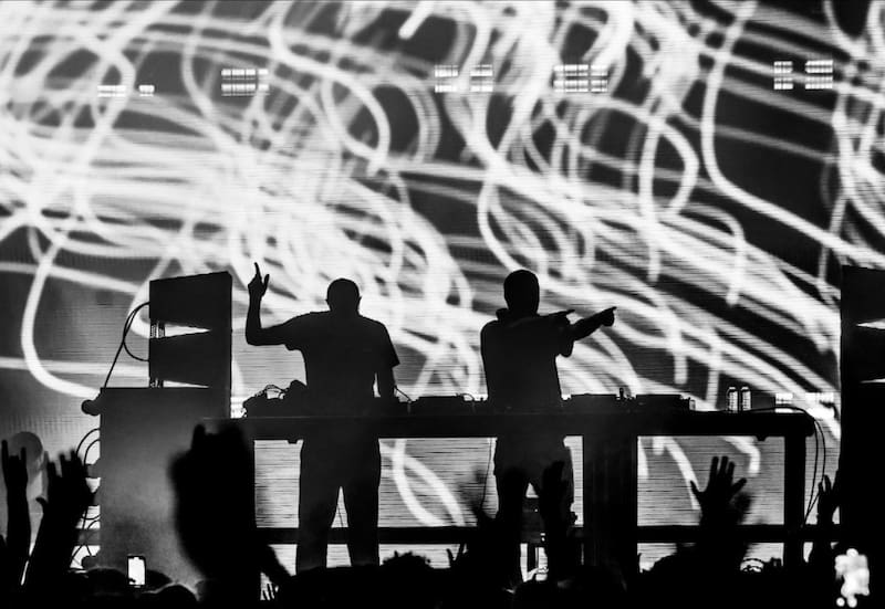 Menos equipaje, menos carga, menos transporte aéreo. Solo viajamos nosotros dos. Viajamos con un amigo nuestro, que nos ayuda a subir al avión y se encarga de los aspectos técnicos. Pero, en general, nos parece que es un poco menos complicado. Cuando tocamos en directo viajamos con otras 20 personas, así que es como un circo ambulante, pero a veces es difícil ponerlo en marcha y coger impulso. Así que nos limitamos a subirnos y experimentar con la música. Supongo que uno de los grandes consejos es que podemos crear algo en el estudio dos semanas antes…y luego podemos encontrar la manera de tocarlo cuando hacemos el DJ set. Mientras que tocar en directo es un poco más complicado.