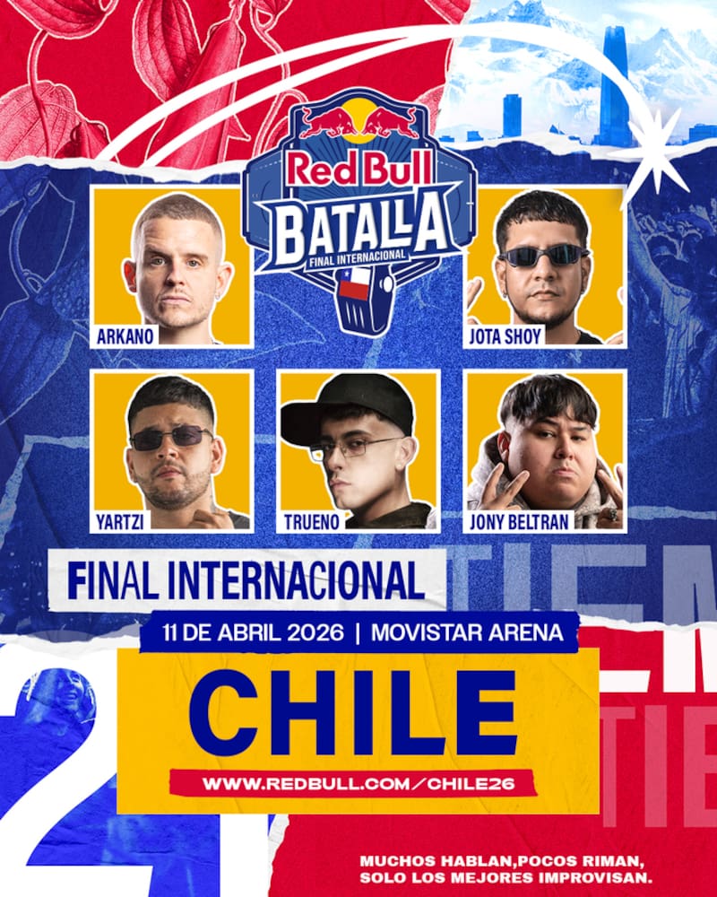 Ya están todos los detalles listos para la gran Final Internacional de Red Bull Batalla Chile 2026 del próximo 11 de abril, los jueces del evento deberán decidir al campeón entre 16 MCs en un Movistar Arena sold out, donde sus asistentes serán parte de una jornada histórica.