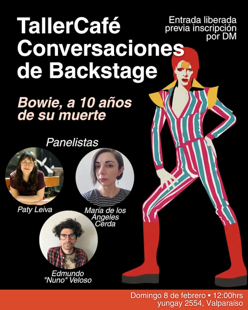En la segunda fecha del ciclo de conversatorios “Conversaciones de Backstage”, el tópico principal será la obra del artista David Bowie. El evento se realizará en las dependencias de TallerCafé (ubicadas en Yungay 2554, Valparaíso) y la entrada es liberada. La instancia comenzará a las 12:00 horas del domingo 8 de febrero.