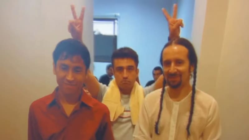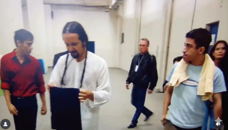 La imagen corresponde a uno de los dos videos que durante este fin de semana liberó la cuenta de Instagram Planeta Prisionero (https://www.instagram.com/planetaprisionero/) que siempre suele compartir material sobre la banda. La cuenta no especificó la procedencia del material, aunque es bastante probable que haya sido un descarte del documental Lo estamos pasando muy bien, dirigido por Carmen Luz Parot, que dio cuenta de las jornadas de regreso.