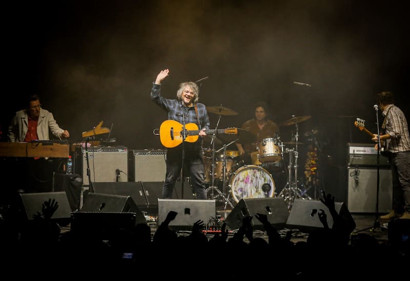 “Ataco con amor, pura belleza de insecto”, canta Jeff Tweedy en la primera línea de Company in my back, uno de los cortes de A Ghost is Born, con el que arranca el show de Wilco en Teatro La Cúpula. La letra cargada de imágenes, sonó como una invitación en la noche fría de Santiago (el último paso de su gira sudamericana), en un otoño que recrudece mientras avanza hacia el invierno.