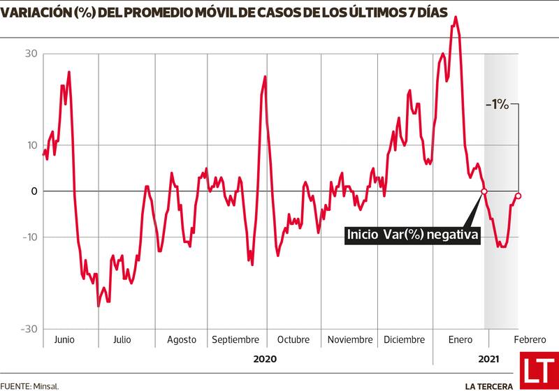 La caída de los contagios se mantiene constante desde fines de enero, coincidiendo con los recesos estivales y los 2,5 millones de permisos de vacaciones que se han entregado en todo Chile, la mitad de ellos en la Región Metropolitana. Sin embargo, algunos expertos plantean que esta situación podría cambiar en marzo, de la mano con un alza en la movilidad, efecto que podría ser contrarrestado si al otoño ya hay un porcentaje relevante de la población inmunizada.