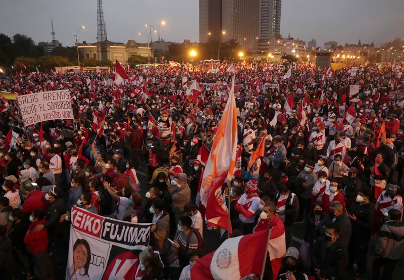 Según la Onpe, el organismo electoral encargado del recuento de votos, Castillo ya es el Presidente del Perú con una ventaja de 0,28%, unos 49.000 votos. Todo indica que el Jurado Nacional de Elecciones, que revisa los pedidos de nulidad planteados por los abogados de Keiko Fujimori, está rechazando la mayor parte de la argumentación fujimorista. Es posible entonces que la ventaja se angoste, pero es imposible que desaparezca. Recuerde usted que Kuczynski le ganó a la señora Fujimori por 42.000 votos y que ella también empleó la palabra fraude para definir esas elecciones.