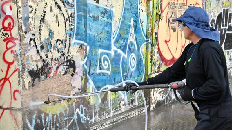 Con limpieza y pintura de muros: comienza la revitalización de fachadas del eje Alameda-Providencia