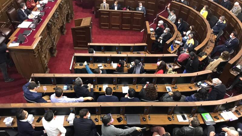 El diseño, que se había acordado entre ambas partes en una reunión que partió a las 11.30 de la mañana en el Palacio Pereira, contemplaba que 80 convencionales sesionaran en el pleno, separados por un escaño y, a la vez, que otros tres grupos de 25 se separaran en salas independientes y se conectaran al resto por vía telemática.