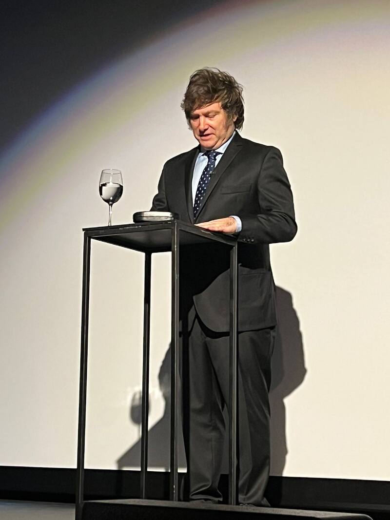 “Nosotros defendemos las ideas de la libertad, y somos absolutamente intransigentes a cualquier desvío. Por eso, lo que voy a intentar hacer hoy es contarles una triste historia, que es la historia de Argentina, pero también contarles que hay solución”, inició el candidato presidencial, bajo una retórica de ellos contra nosotros que se mantuvo durante la hora de discurso.