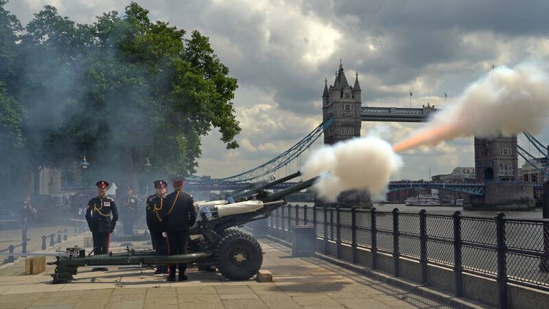 La reina disfrutó el momento. Con una sonrisa, conversó con su bisnieto, el príncipe Luis, de cuatro años, quien ocasionalmente se cubrió los oídos mientras 70 aviones de combate antiguos y modernos sobrevolaban el palacio para saludar a su bisabuela. La exhibición de seis minutos incluyó una formación de los jets de combate Typhoon para dibujar un número 70 en el cielo.