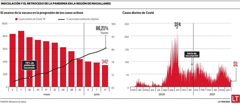 El caso de Magallanes es seguido de cerca por las autoridades del Ministerio de Salud, que esperan que la baja en sus contagios, en la medida en que también aumenta su población vacunada, se vaya replicando en otros sectores del país, especialmente en la Región Metropolitana.