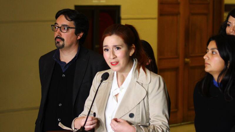La escena que ocurrió el lunes por la tarde en el podio instalado en el hall El Pensador de la Cámara de Diputados fue nítida. La -hasta este martes- segunda vicepresidenta de la corporación y diputada por Antofagasta, Catalina Pérez (RD), fue flanqueada por parte de su bancada; por el senador y timonel de su partido, Juan Ignacio Latorre, y por las diputadas de Comunes Camila Rojas y Claudia Mix.