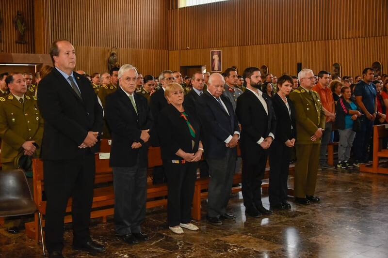 Hasta la parroquia San Ramón, en Providencia, llegaron tres de los cuatro expresidentes a acompañar a la familia del carabinero asesinado la madrugada del jueves. En esa ocasión, por primera vez se vio a los exmandatarios encontrarse con el Presidente Gabriel Boric. Además de ellos, acudieron alcaldes como Matthei y Carter, quienes fueron recibidos efusivamente.