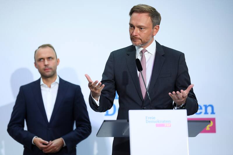 El presidente del FDP, Christian Lindner, y la copresidenta de los Verdes, Annalena Baerbock, enfatizaron sus diferencias durante la campaña, pero tomaron notas conciliadoras en una mesa redonda de televisión después de las elecciones, diciendo que coordinarían las conversaciones con cualquier partido mayor.