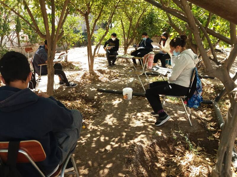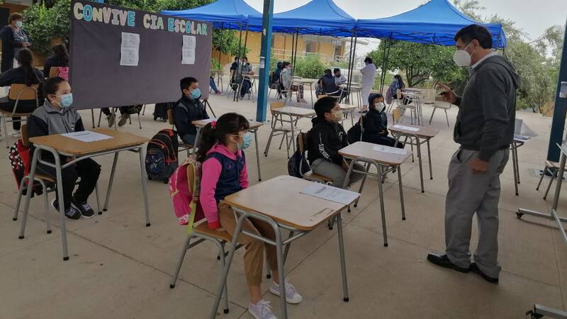 El Colegio Pichasca, en la comuna de Río Hurtado, Región de Coquimbo, optó por limitar al máximo el riesgo de contagios y adaptó el establecimiento para hacer las clases al aire libre. Especialmente en los días en que arrecia la vaguada costera, los niños llegan muy abrigados, aunque puntuales.