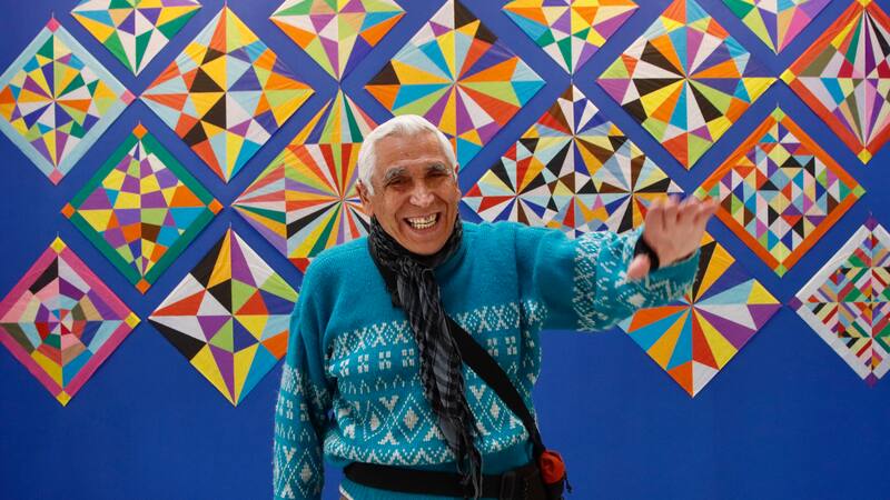Todos se quieren sacar fotos con él. Es sábado 10 de septiembre y el porteño Carlos Almarza (82) parece una celebridad: en el Centro de Extensión (Centex) del Ministerio de las Culturas, en Valparaíso, se inaugura la exposición “Navegar el viento”, una muestra que celebra sus casi 70 años dedicados a la confección artesanal de volantines calados.
