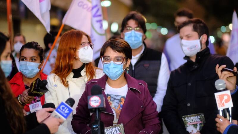 De hecho, el Paseo Ahumada, en la comuna de Santiago, fue el sector que escogieron para realizar el cierre de campaña, en el que Oliva entregó panfletos junto a los candidatos presidenciales de Apruebo Dignidad, Daniel Jadue (PC) y Gabriel Boric (FA).