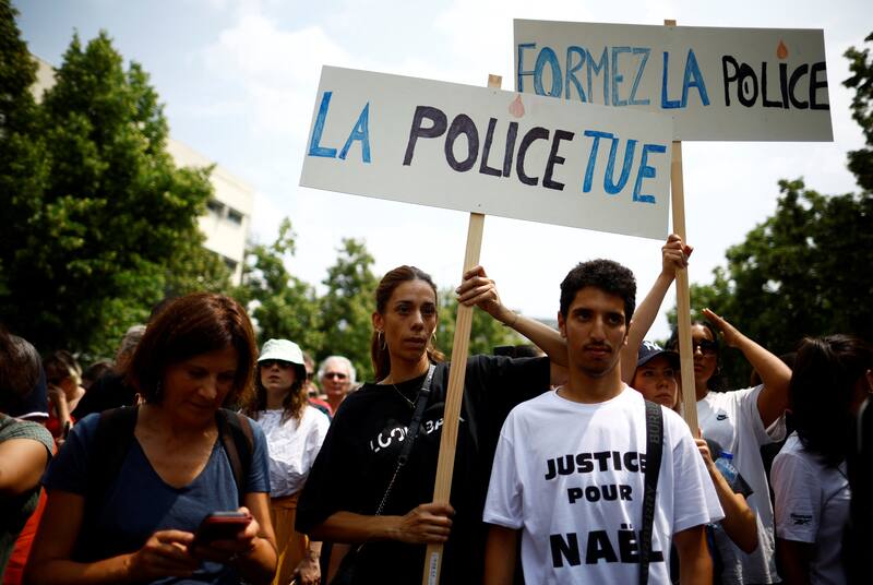 La multitudinaria marcha en Nanterre estuvo encabezada por Mounia, la madre de Nahel, quien se sentó en la parte superior de una camioneta. Entre los manifestantes se encontraban jóvenes, personas mayores y personas de diferentes orígenes étnicos, incluidos hijos y nietos de inmigrantes magrebíes y africanos. El “banlieue” o extrarradio parisino es conocido por su gran cantidad de inmigrantes venidos, principalmente, del norte de África. A la marcha acudieron políticos como Éric Coquerel, de La Francia Insumisa, o la secretaria general del Partido Verde francés, Marine Tondelier.