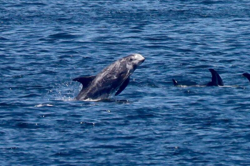 El delfín gris o de Risso puede llegar a medir cuatro metros y pesar 500 kg. Su cara es más redondeada (o achatada) que la del nariz de botella, que es más comúnmente avistado en la costa de la región. Este último -también conocido como delfín mular- en su etapa adulta alcanza una longitud de entre 1,9 a 3,8 metros, y un peso que va de los 220 a los 500 kg. Son grandes acróbatas y excelentes nadadores.