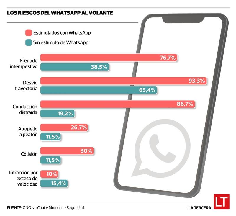 Las conclusiones de dicho estudio, el que se realizó a 60 personas entre 18 y 72 años en un simulador, arrojaron observaciones alarmantes: quienes utilizaron WhatsApp mientras manejaban tendían a conducir en zigzag, a bajar intempestivamente la velocidad, a irrespetar la señalética e incluso a subirse a la vereda.