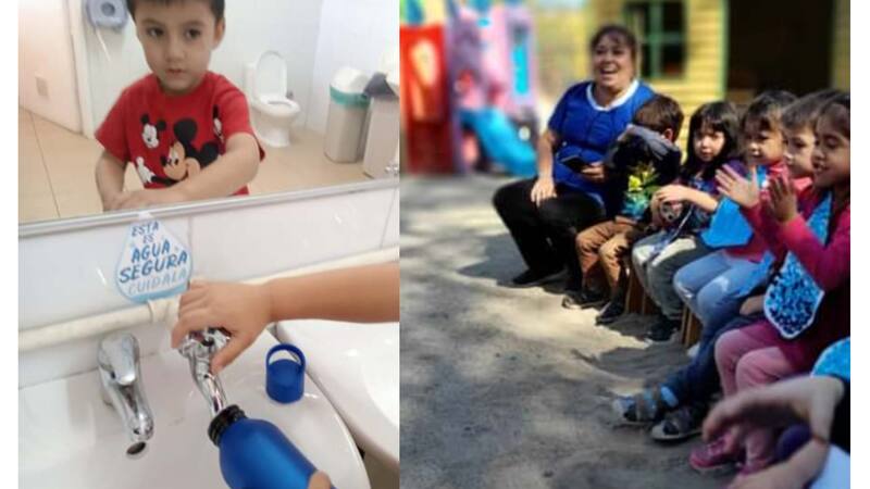 Luego del desconfinamiento pandémico, las reuniones de los profesionales de Agua Segura con Magaly Oyarzo y su equipo pasaron a ser presenciales, sumándose charlas con la comunidad. La directora del jardín infantil dice que las familias debían convencerse de que sus niños bebieran agua que provenía de una tecnología de punta que la purificaba, pero que no era de uso masivo. Paso a paso -comenta-, el proyecto fue ganando fuerza y la confianza comunitaria para su instalación en su jardín infantil y en la escuela básica aledaña, la G 348, que dirige Katty Naranjo.