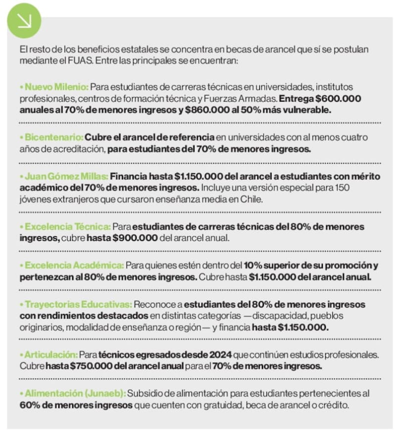 Todas ellas se postulan a través del Formulario Único de Acreditación Socioeconómica (FUAS), salvo algunas líneas específicas, y constituyen una alternativa clave para quienes no califican a gratuidad o necesitan complementar su financiamiento.
