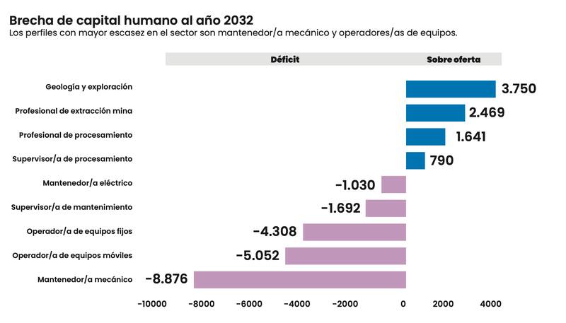 Especialidades técnicas y profesionales del ámbito minero, como Geología, Metalurgia e Ingeniería de Minas, muestran una relativa holgura en la oferta de profesionales disponibles. Por el contrario, donde existe escasez es en las áreas de mantenimiento y operaciones, tanto en la formación técnica como en la profesional.