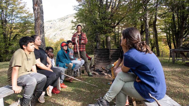 Las jornadas se organizan en estadías periódicas y prolongadas en terreno, como parte de un proceso de aprendizaje en la naturaleza. Allí los estudiantes cortan leña, levantan refugios, preparan alimentos y resuelven desafíos colectivos. La metodología —cuenta Fernández— se inspira en prácticas observadas en la vida rural y en el saber de comunidades del sur austral. “Volvemos a acciones intrínsecamente pedagógicas: cocinar, refugiarse, explorar, registrar, expresar, convivir”, resume. Cerca del 50% de quienes guían estas actividades son personas locales vinculadas al territorio y a los oficios de la zona.