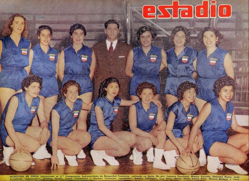 1956: La selección chilena de básquetbol femenino se consagra campeona sudamericana, al vencer 34-32 a Ecuador en la última jornada, en Quito. Brillante actuación de la Roja con seis victorias en seis partidos.