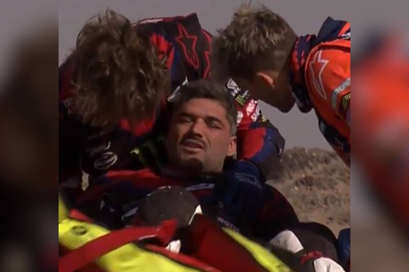 El motociclista se accidentó en el kilómetro 133 de la especial cronometrada entre Al Duwadimi y Riad, mientras intentaba alcanzar a los líderes de la carrera. Tras el suceso, fue asistido por Adrien Van Beveren y Luciano Benavides, a quienes les agradeció públicamente cuando pudo referirse a lo vivido en la jornada. Quintanilla debió ser evacuado en helicóptero hasta un centro asistencial y fue en ese lugar donde se descartó alguna lesión de mayor gravedad. De acuerdo a la información recabada por El Deportivo, el chileno se someterá a más exámenes en la Clínica Universidad de los Andes este miércoles. Su idea es recuperarse para la carrera de Abu Dabi, que se llevará a cabo del 21 al 26 de febrero.