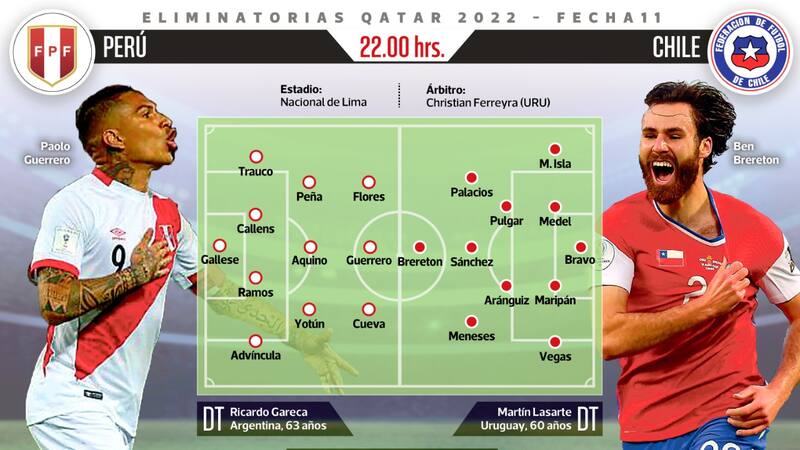 La selección chilena visita al conjunto del Rímac muy diezmada y con la obligación de sumar, al menos, un punto. Una derrota dejará al equipo de Martín Lasarte muy lejos de la clasificación y también del repechaje. El Clásico del Pacífico más decisivo del último tiempo.