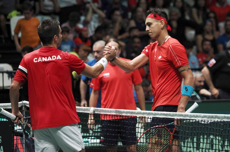 Alejandro Tabilo dio inicio a la serie ante los norteamericanos con una derrota ante Alexis Galarneau en dos sets. El capitán Nicolas Massú sorprendió con la entrada del nacido en Toronto, ya que venía jugando el ariqueño en los días anteriores.