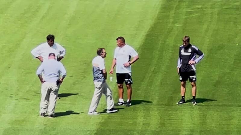 En la faena, Mosa contó con la colaboración de un actor decisivo y, para el objetivo, bastante meticuloso: Jorge Almirón. El técnico albo supervisó metro por metro el resultado de los trabajos a los que fue sometido el césped. En el video publicado por los canales institucionales del club se muestra claramente que se detuvo en zonas específicas.