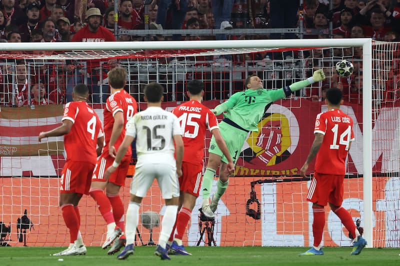 Con espacios por delante, la dupla ofensiva merengue llega a ser letal. Antes del descanso, una combinación entre Vinícius y Mbappé acabó con el 3-2 del francés (42′), quien remató ante un Manuel Neuer entregado. El global estaba igualado, llevando la serie al alargue. Más allá de las estadísticas y las métricas, lo cierto es que el primer tiempo fue imperial. Directo al archivo de lo mejor del año.