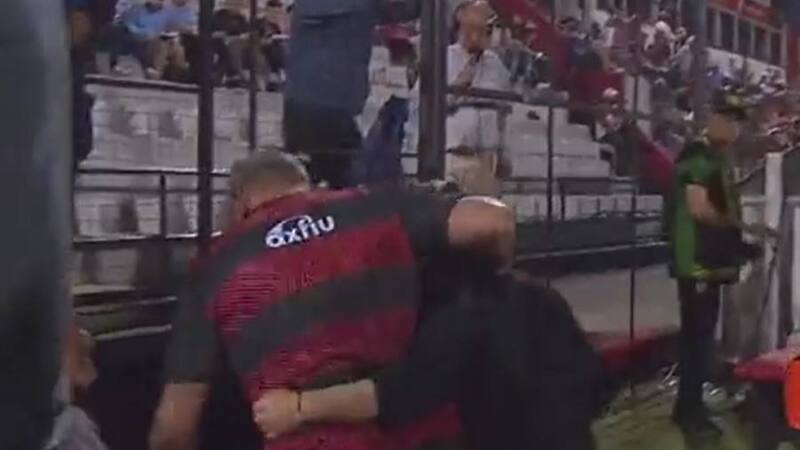 Tras el fin del primer tiempo, el DT de Defensa y Justicia se fue rápido al túnel de acceso a la zona de camarines e Iván Delfino, técnico de Patronato, se fue corriendo a buscarlo y lo agarró por el cuello.